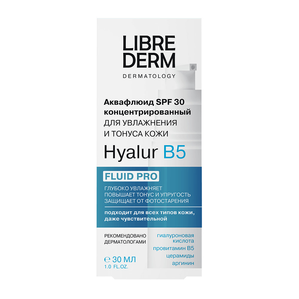 LIBREDERM Концентрированный аквафлюид для увлажнения и тонуса кожи SPF30 Hyalur B5 30 мл |