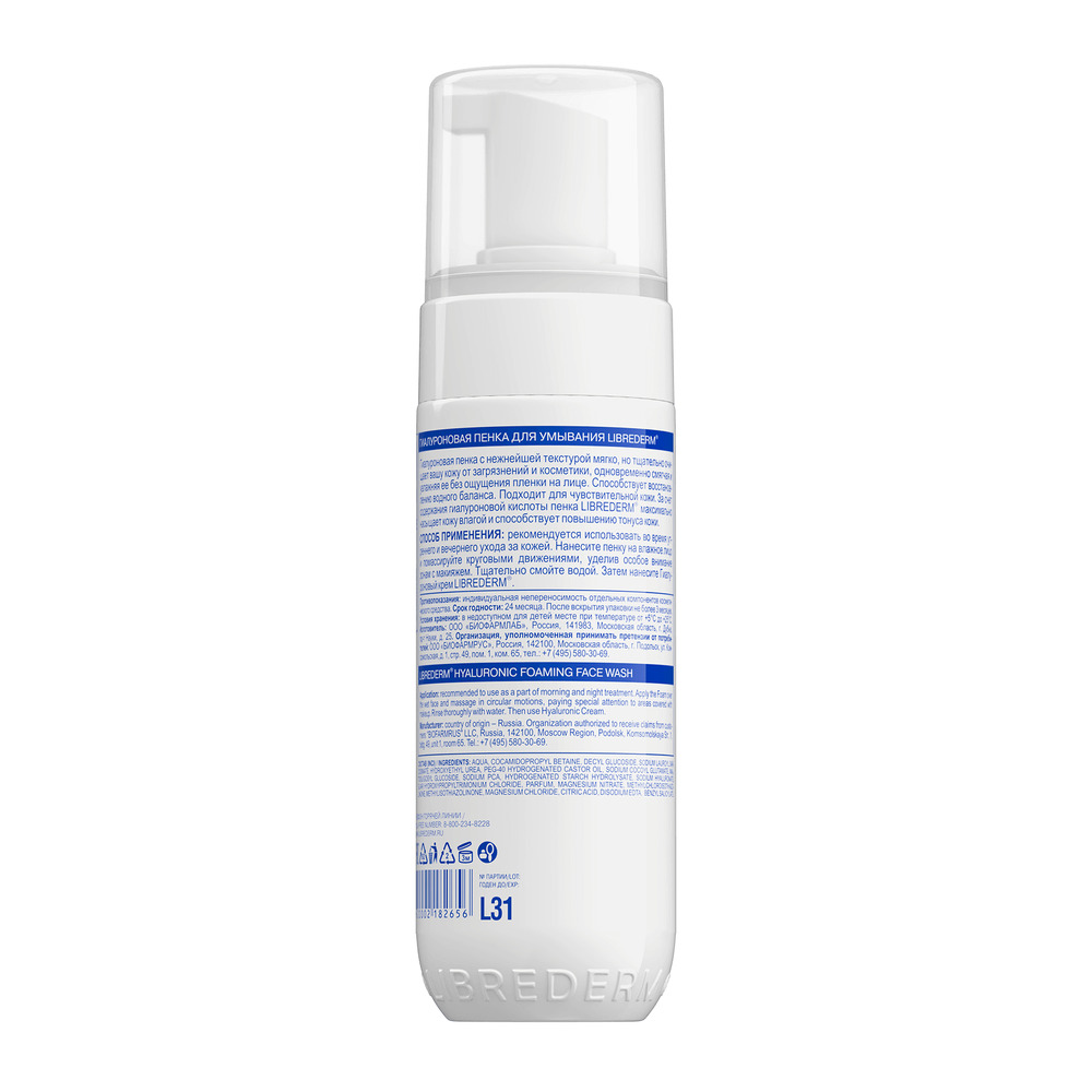 | LIBREDERM Hyaluronic пенка-гиалуроник для умывания 160 | Бережное и эффективное очищение кожи лица от макияжа, загрязнений и излишков себума. | HYALURONIC | `00046204638 | `4610216615798 | |