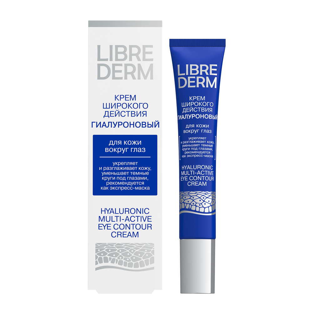 LIBREDERM Гиалуроновый крем широкого действия для кожи вокруг глаз 20 мл | Подтягивает складку века, сокращает «гусиные лапки», осветляет темные круги под глазами и уменьшает отечность. | HYALURONIC | `00000100780 | `4620002184384 |