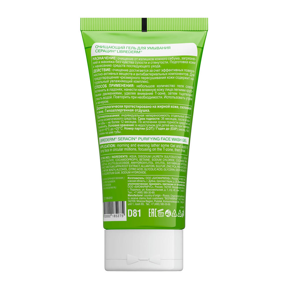 LIBREDERM Серацин очищающий гель для умывания 150 мл | Гель для умывания для очищения жирной кожи и кожи с акне. | SERACIN | `00000111400 | `4620002185275 |