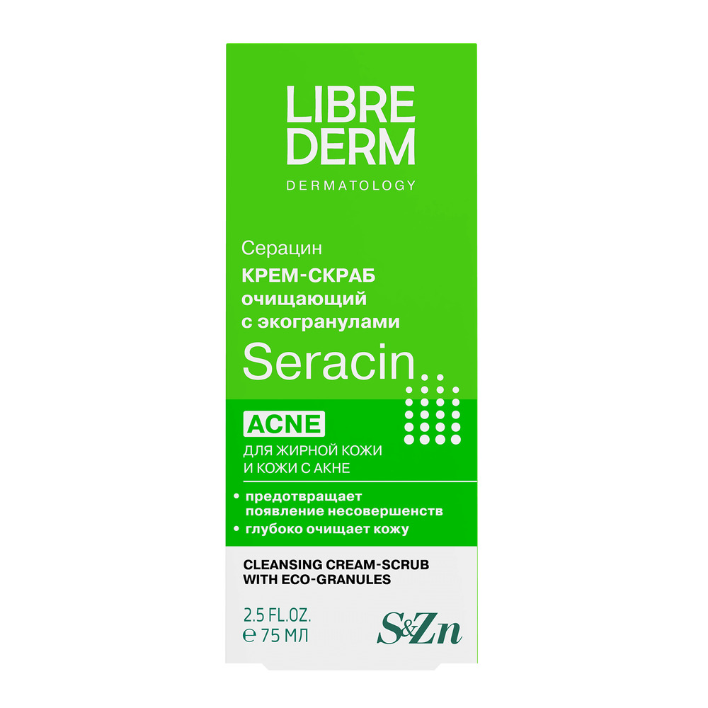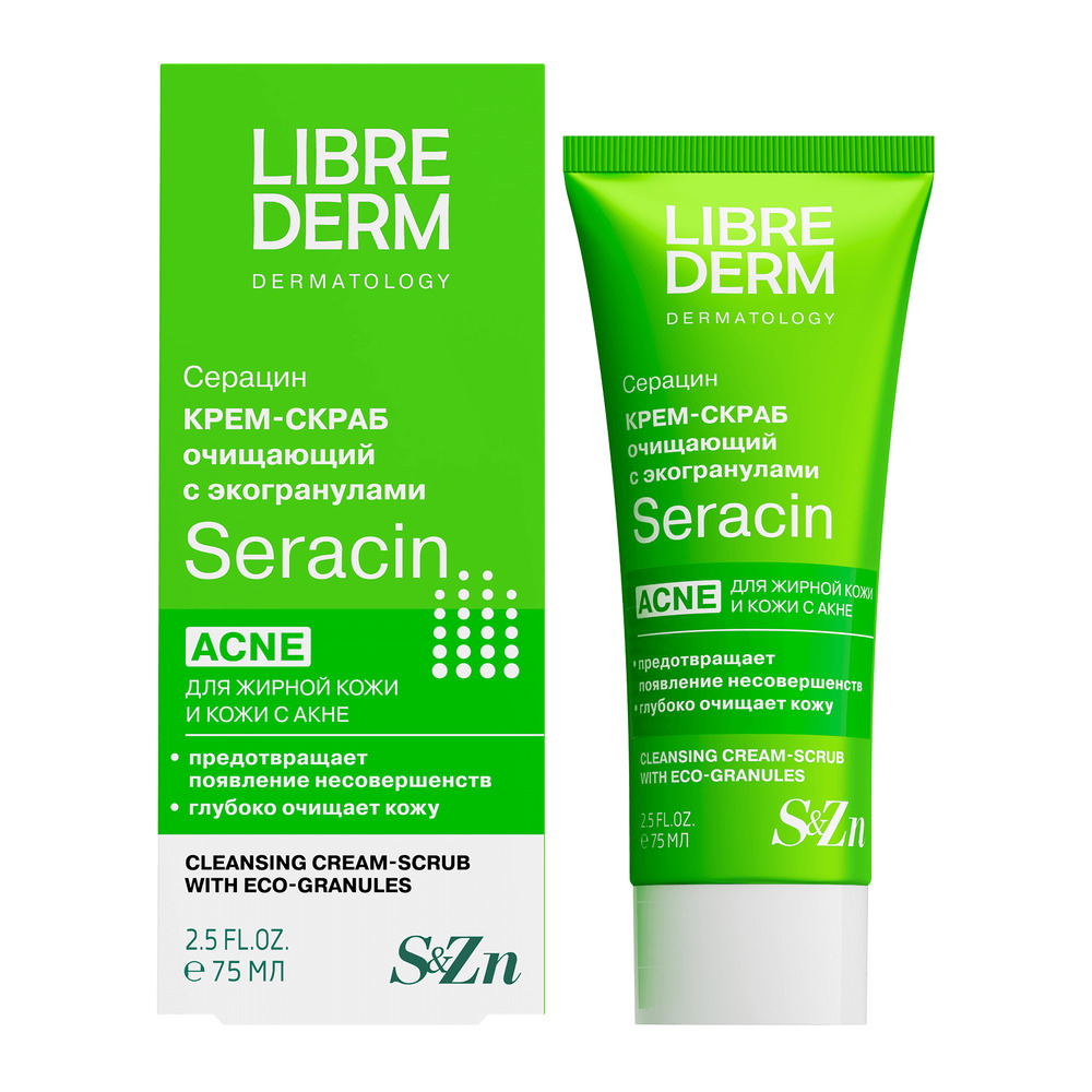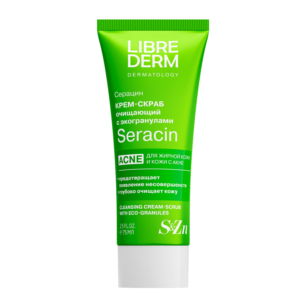LIBREDERM Серацин очищающий крем-скраб с эко-гранулами 75 мл | Для глубокого очищения кожи от внешних загрязнений. | SERACIN | `00000111410 | `4620002185282 |