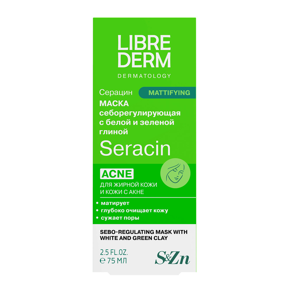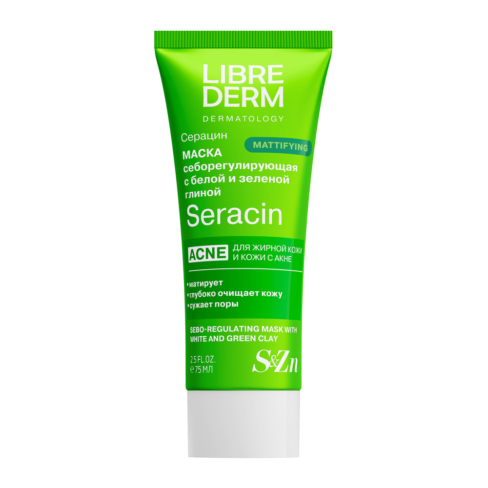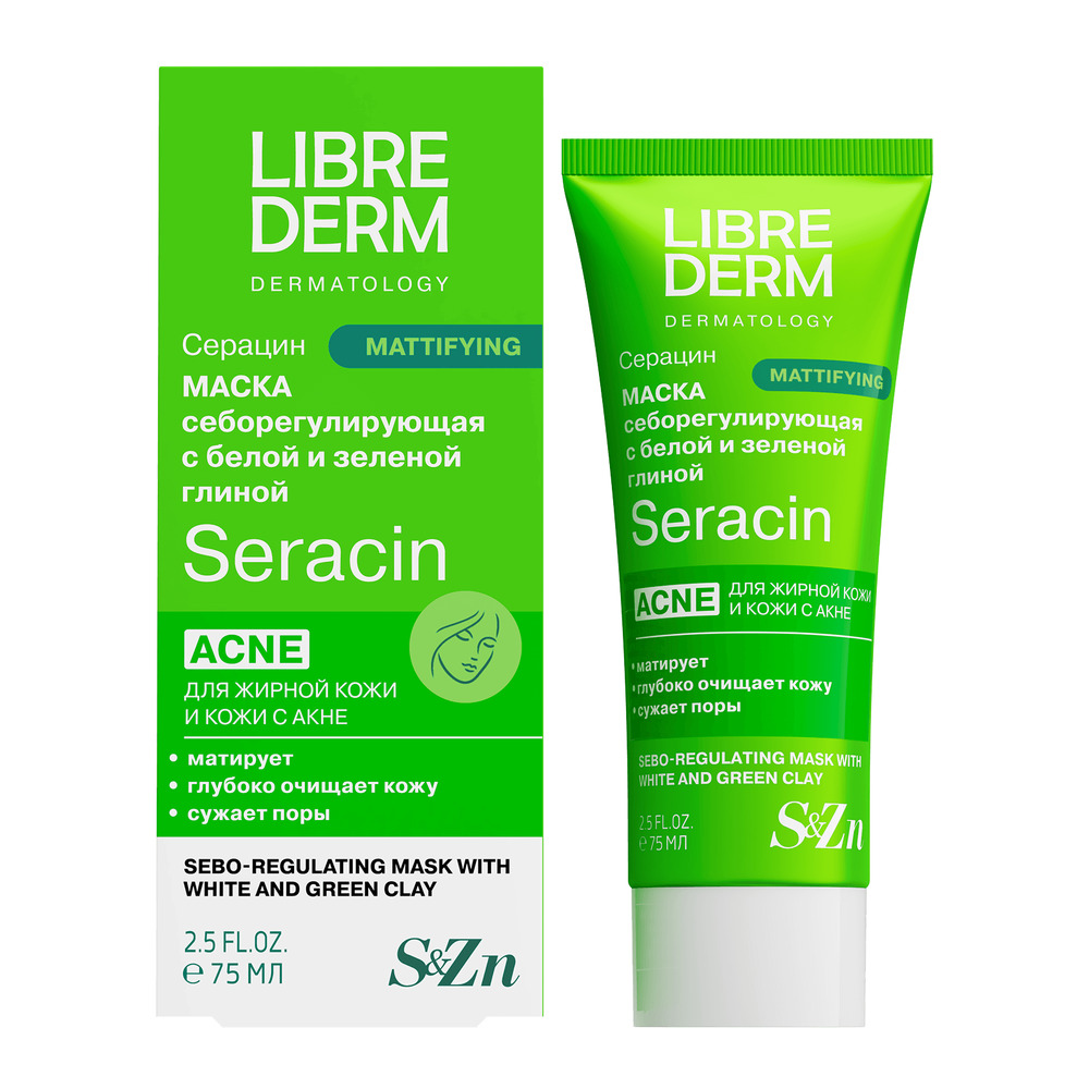 LIBREDERM Серацин себорегулирующая маска с белой и зеленой глиной 75 мл | Устраняет все основные проблемы жирной кожи и кожи с акне. | SERACIN | `00000111420 | `4620002185299 |