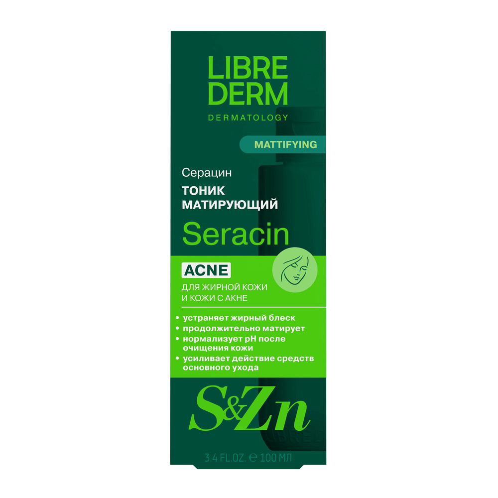 LIBREDERM Серацин матирующий тоник 100 мл | Снижает активность сальных желез. | SERACIN | `00000111430 | `4620002185305 |