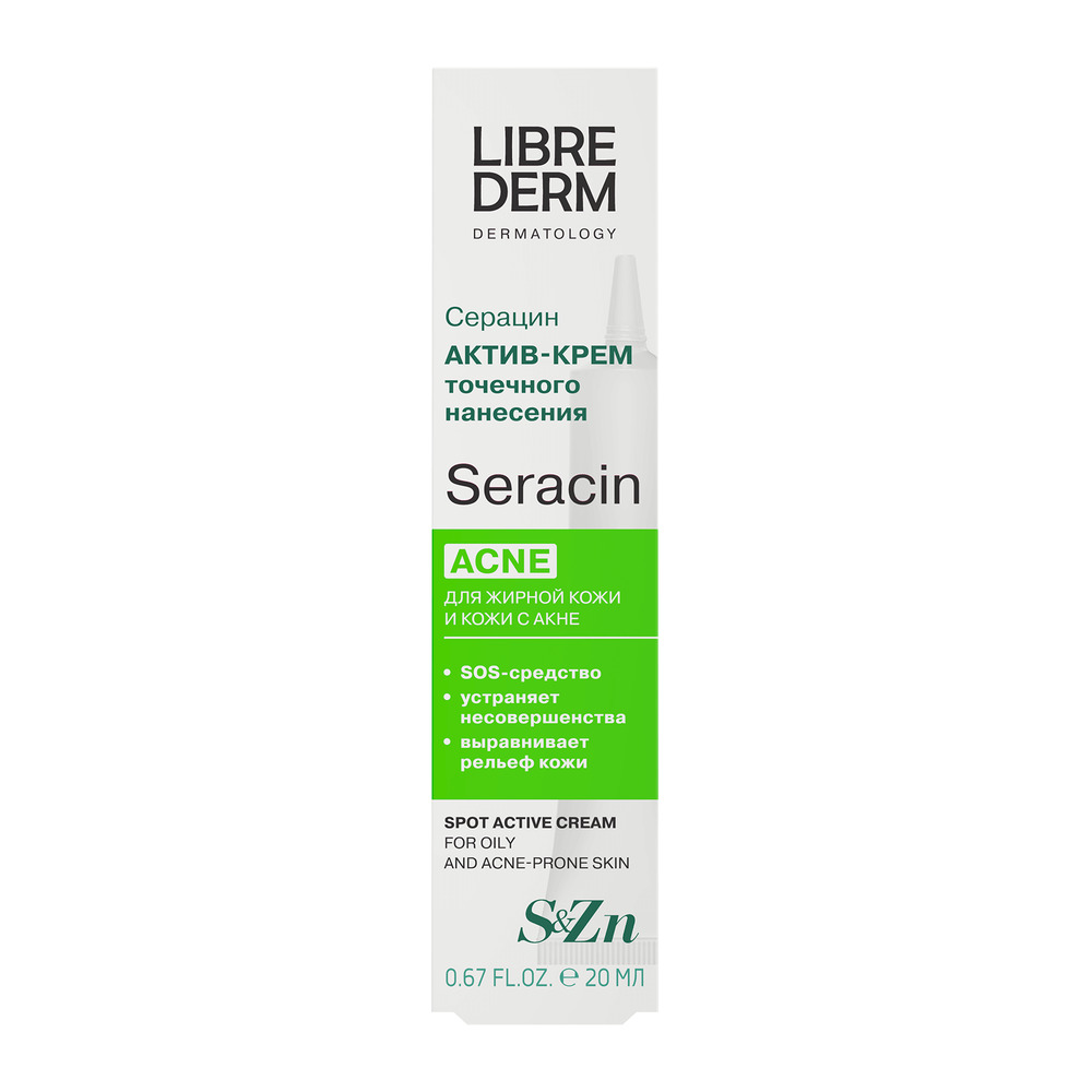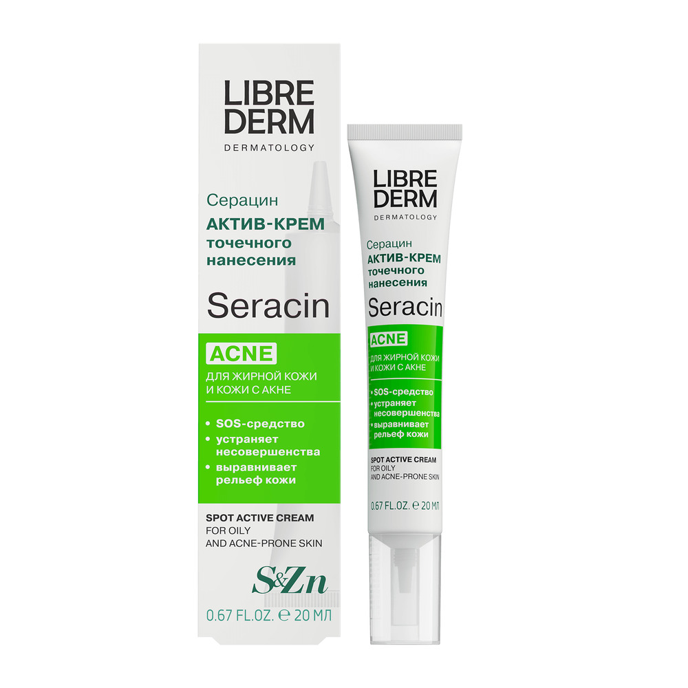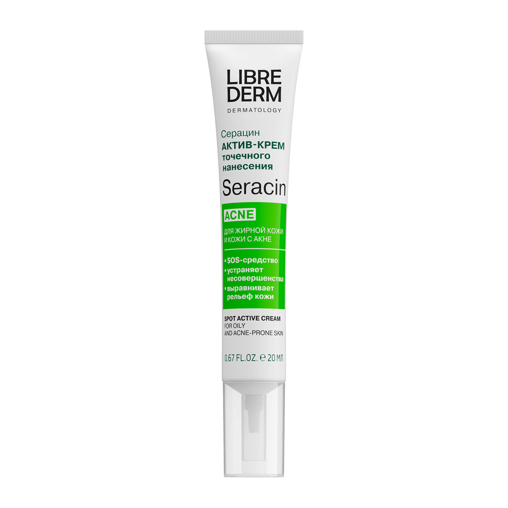 LIBREDERM Серацин актив-крем точечного нанесения 20 мл | Подсушивает и уменьшает в размерах видимые элементы угревой сыпи и прыщей. | SERACIN | `00000114580 | `4620002185374 |