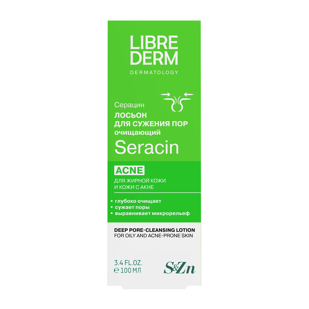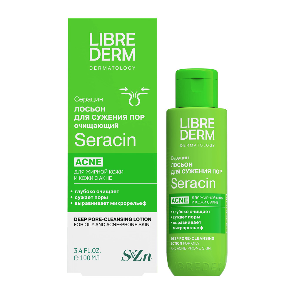 LIBREDERM Серацин лосьон для глубокого очищения пор 100 мл | Бережно эксфолирует отмершие клетки эпидермиса, открывает и очищает поры. | SERACIN | `00000115200 | `4620002185398 |