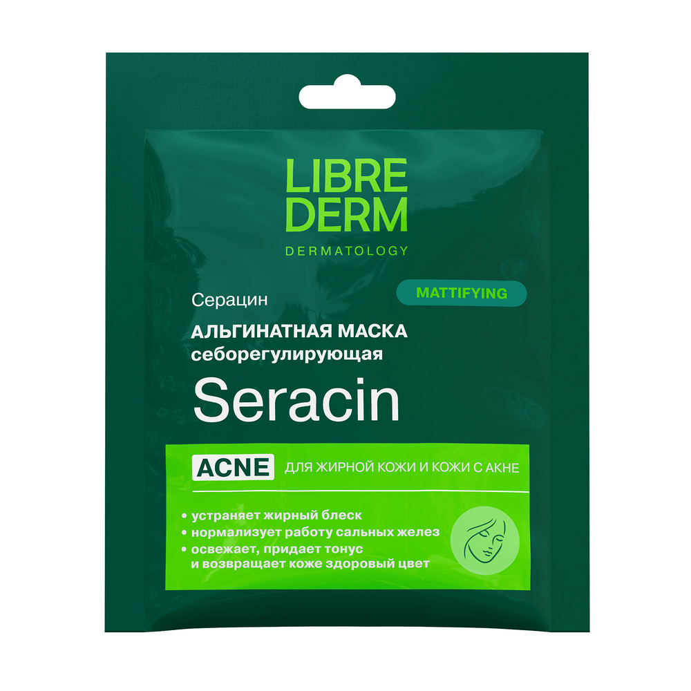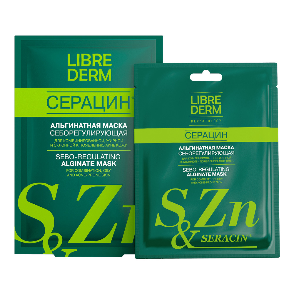 LIBREDERM Серацин альгинатная себорегулирующая маска для проблемной кожи № 1, 30 г | Регулирует выделение себума, успокаивает кожу, уменьшает покраснения и выраженность воспалительных элементов. | SERACIN | `00046179253 | `4620002185732 |