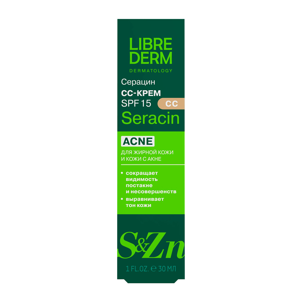 LIBREDERM Серацин CC-крем 30 мл | Эффективно маскирует недостатки жирной кожи. | SERACIN | `00000185896 | `4620002185923 |