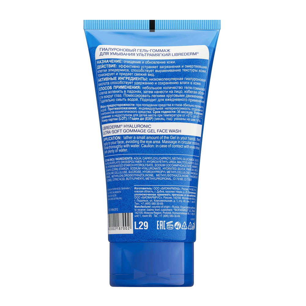 LIBREDERM Гиалуроновый гель-гоммаж для умывания ультрамягкий 150 мл | Нежно и эффективно очищает кожу от загрязнений. | HYALURONIC | `00046177394 | `4620002187002 |