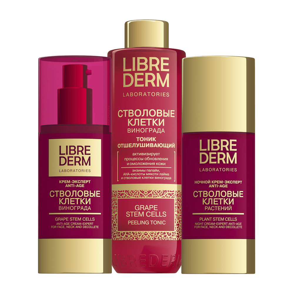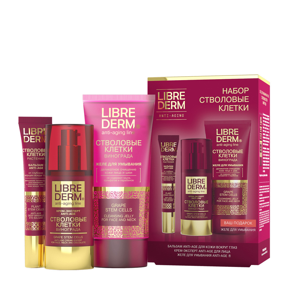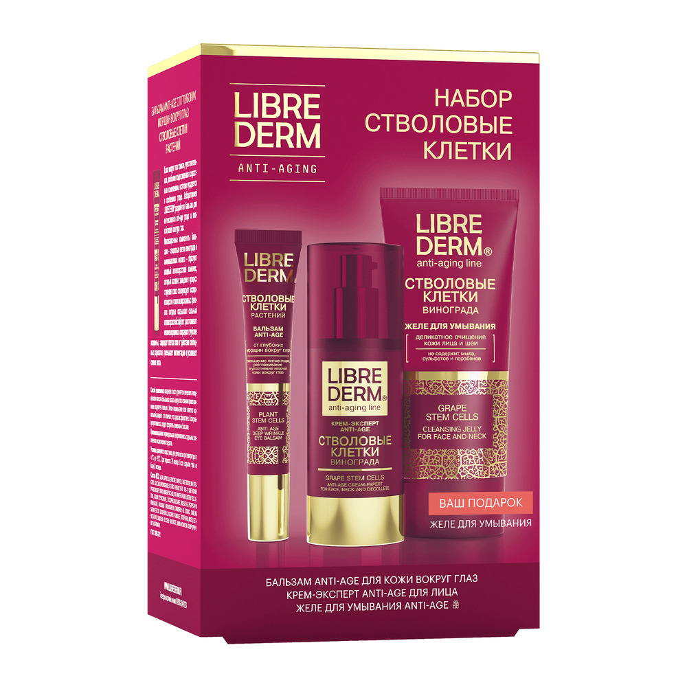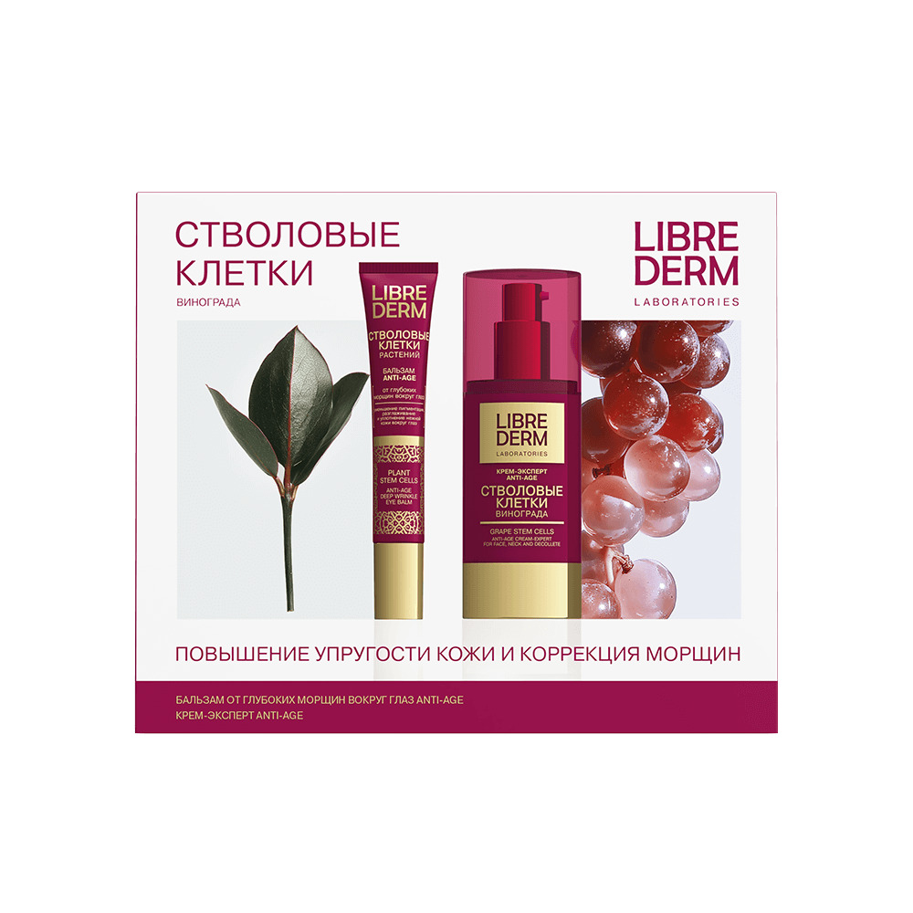 LIBREDERM набор Стволовые клетки винограда «Повышение упругости кожи и коррекция морщин» | Состав набора: Стволовые клетки винограда крем-эксперт Anti-Age 50 мл Стволовые клетки растений бальзам от глубоких морщин вокруг глаз Anti-Age 20 мл | STEM CELLS, SETS | `00046204398 | `4610216613367 |