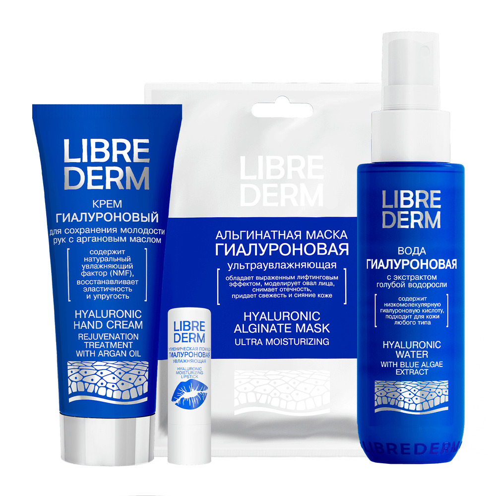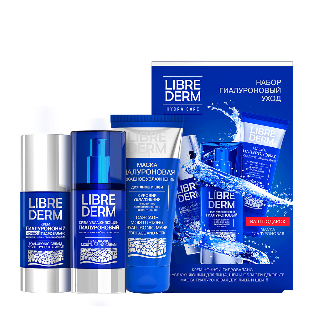 | LIBREDERM набор Гиалуроновый уход 2=1 «Для интенсивного увлажнения» | Состав набора: Гиалуроновый крем увлажняющий для лица, шеи и области декольте Гиалуроновый крем широкого действия для кожи вокруг глаз | HYALURONIC, SETS | `00046204397 | `4610216613350 | |