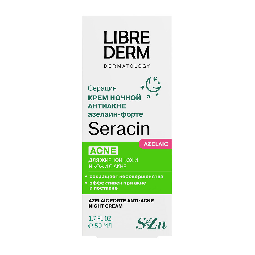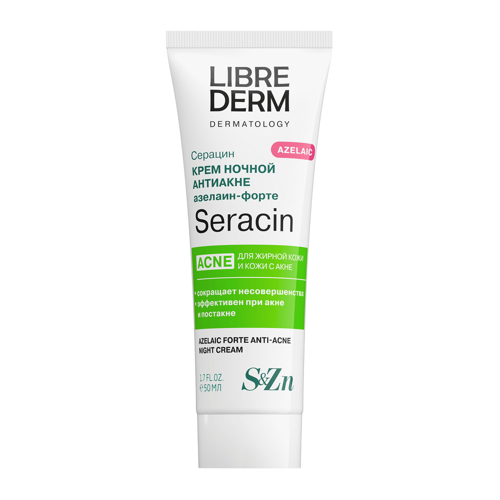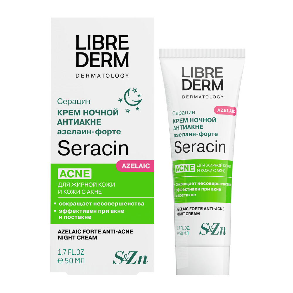 LIBREDERM Серацин крем ночной азелаин-форте 50 мл | Нормализует выработку себума, выравнивает рельеф кожи. | SERACIN | `00046185485 | `4620002189631 |