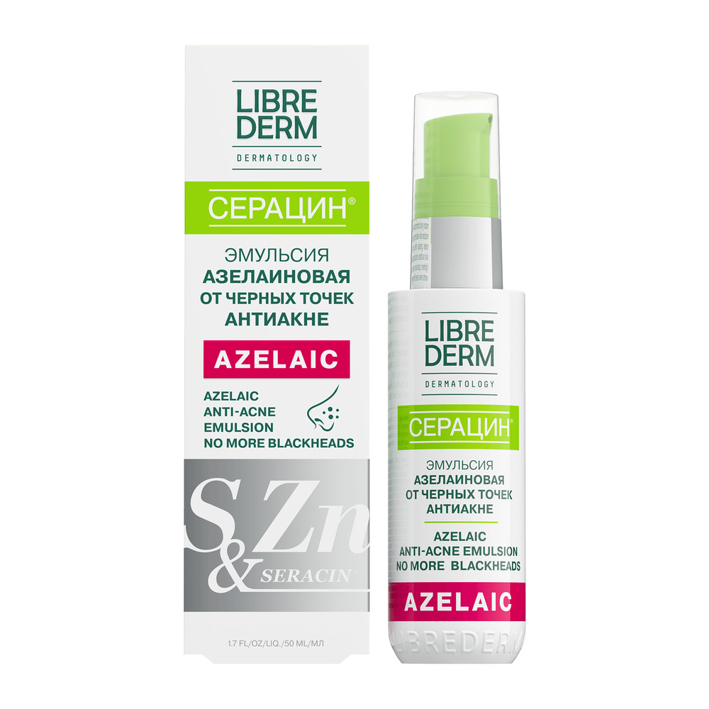 LIBREDERM Серацин эмульсия азелаиновая от черных точек антиакне 50 мл | Устраняет гиперпигментацию, очищает и сужает поры. | SERACIN | `00046185498 | `4620002189624 |
