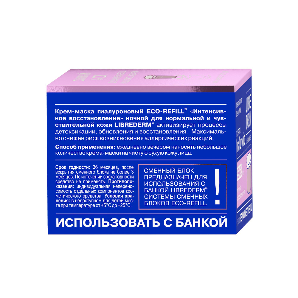 | LIBREDERM Hyaluronic гель-крем гиалуроновый преображающий ночной 50 мл | Интенсивное и длительное увлажнение кожи в период ночного восстановления. | HYALURONIC | `00046204587 | `4610216615866 | |