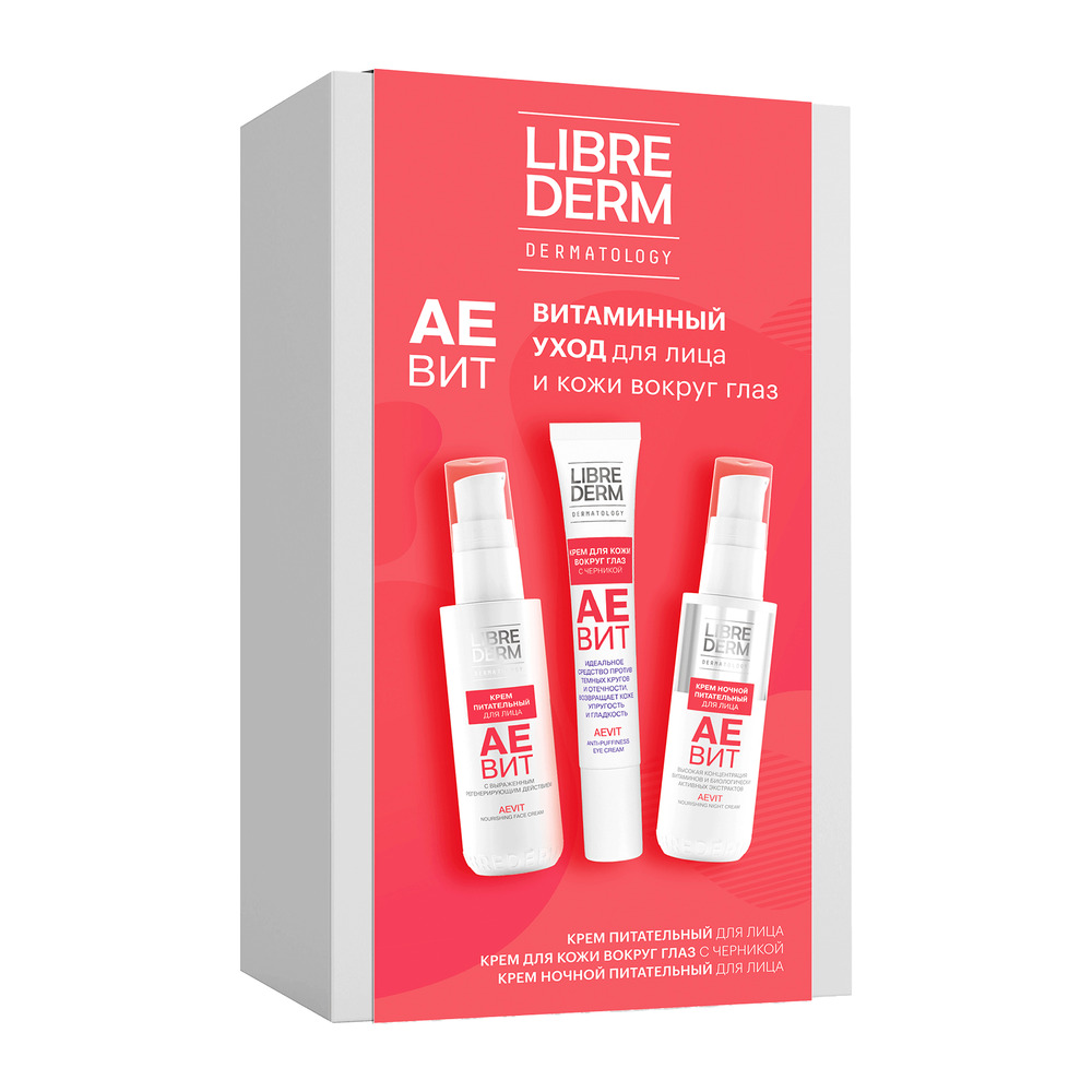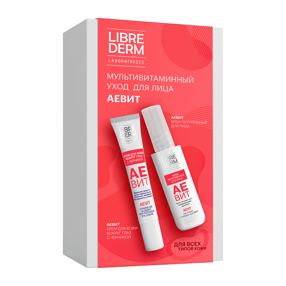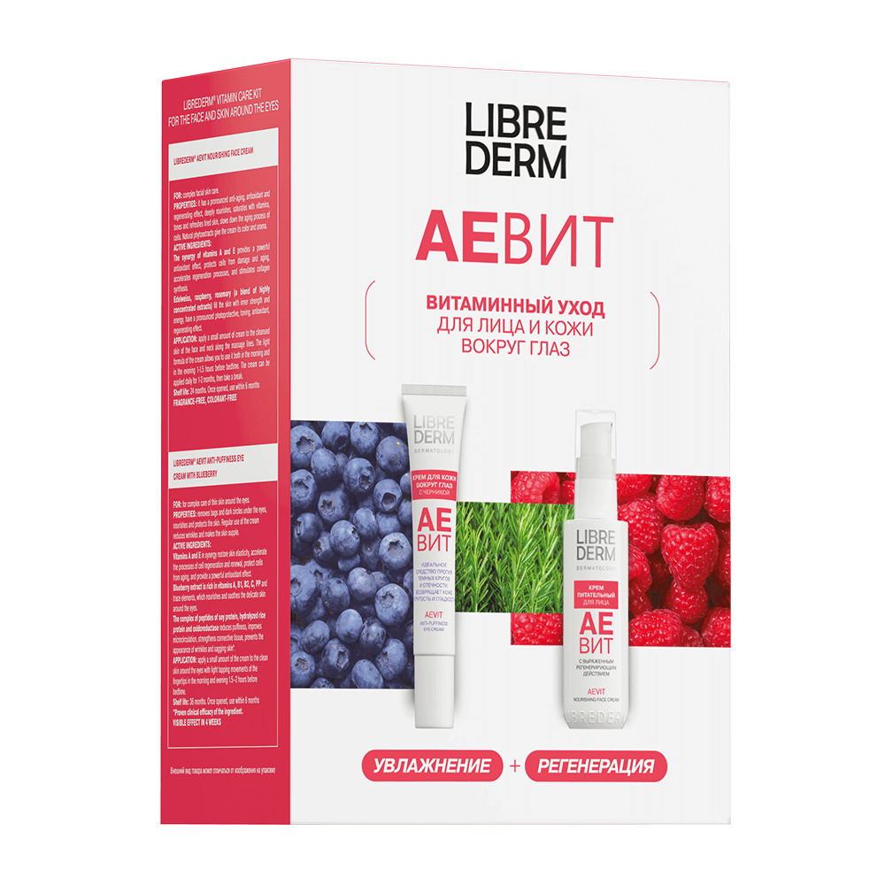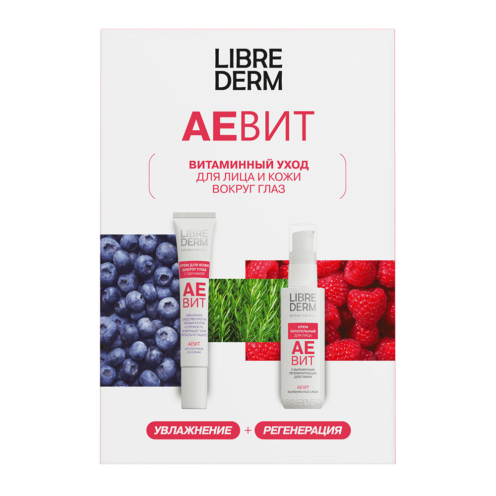 LIBREDERM АЕВИТ Набор Витаминный уход для лица и кожи вокруг глаз | Состав набора: АЕВИТ крем питательный для лица 50 мл АЕВИТ крем с черникой против отеков для кожи вокруг глаз 20 мл | VITAMINS AEVIT, SETS | `00046204474 | `4610216614234 |