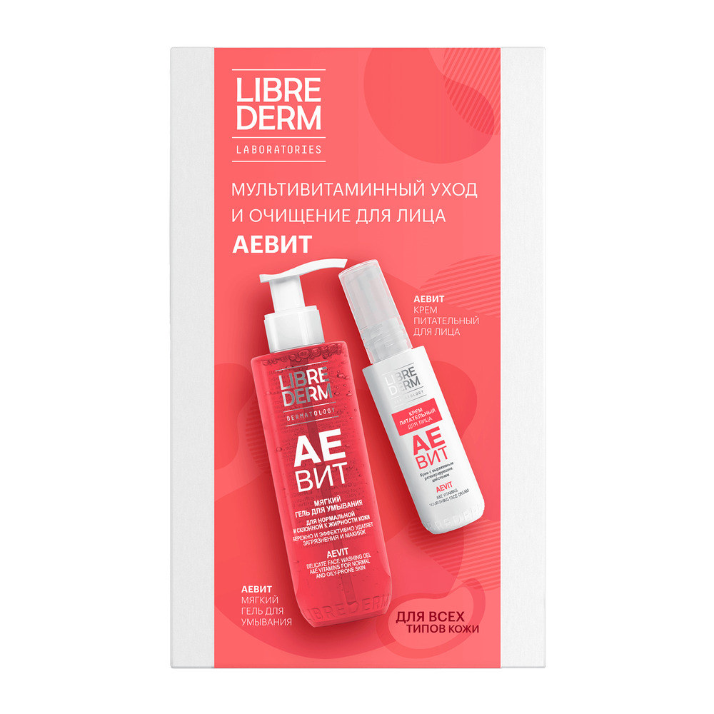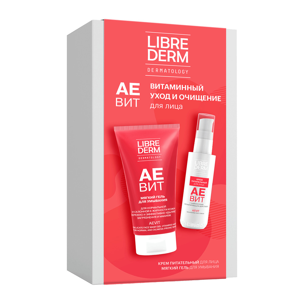 | LIBREDERM АЕВИТ набор Витаминный уход для очищения и увлажнения кожи | Состав набора: Крем для лица 50 мл Гель мягкий для умывания 200 мл | SETS | `00046204446 | `4610216614227 | |