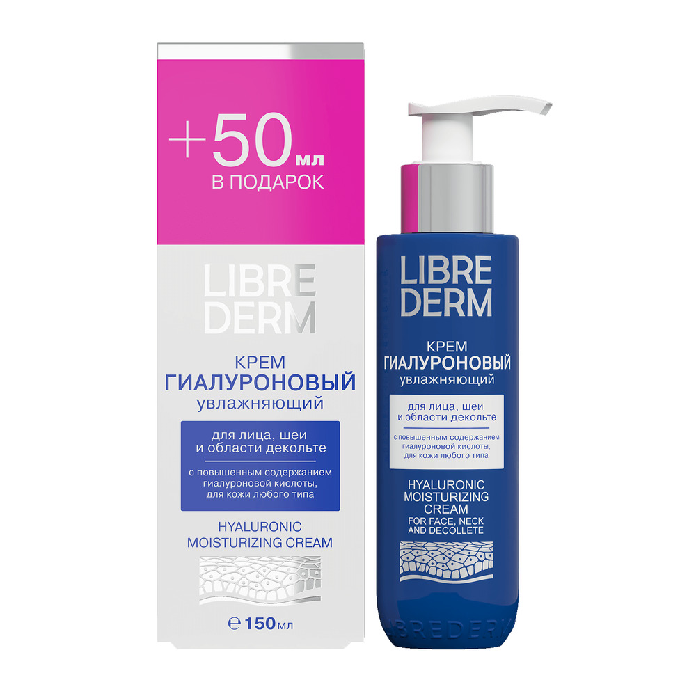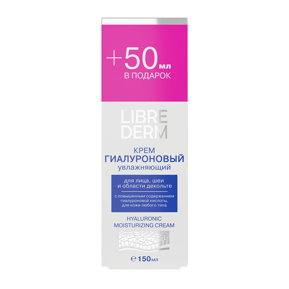LIBREDERM Гиалуроновый крем увлажняющий для лица, шеи и области декольте 50 мл | Крем глубоко увлажняет кожу, мгновенно устраняя ощущение стянутости, морщинки и шелушение, вызванные недостатком влаги. | HYALURONIC | `00000006377 | `4620002182526 |