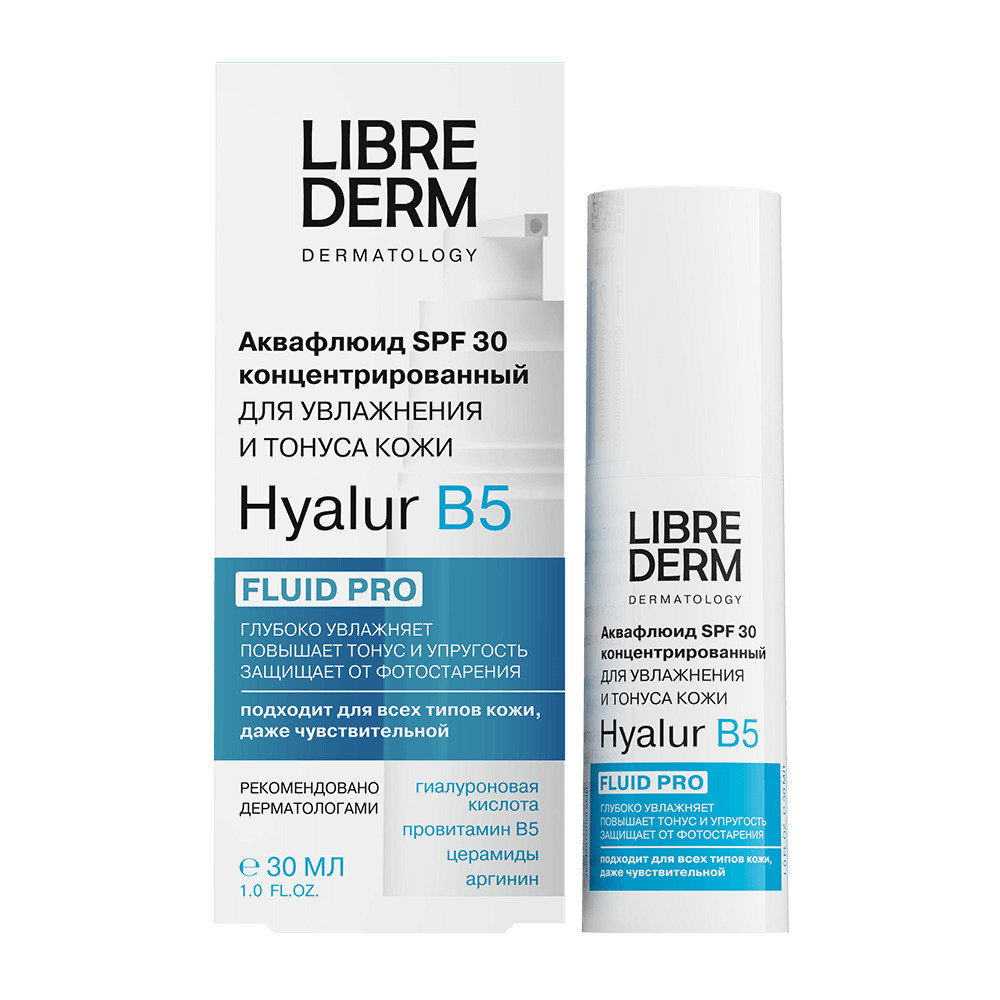 LIBREDERM Концентрированный аквафлюид для увлажнения и тонуса кожи SPF30 Hyalur B5 30 мл | Глубоко увлажняет, повышает тонус и упругость кожи, защищает от фотостарения. | SERUM PRO | `00046203426 | `4610216611066 |