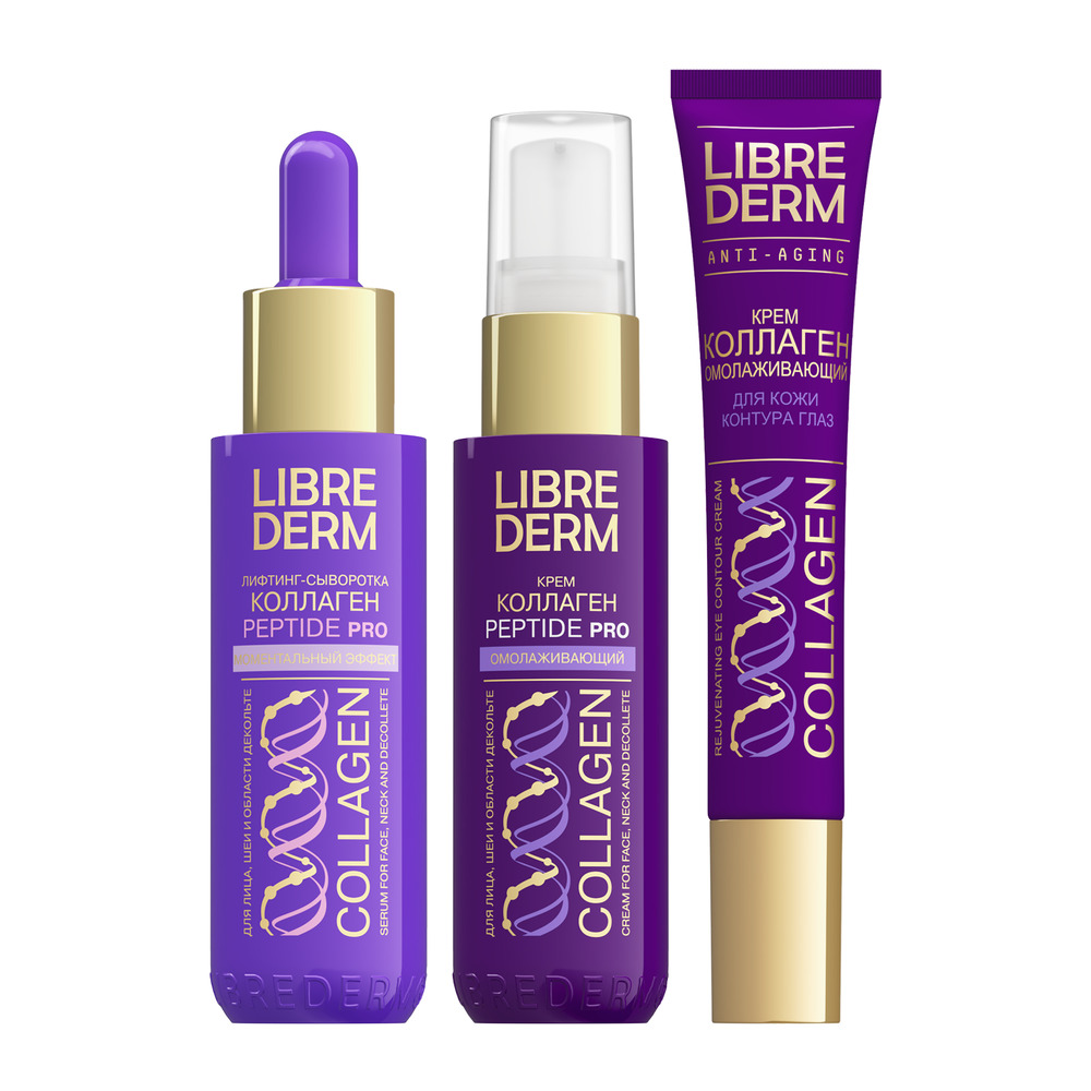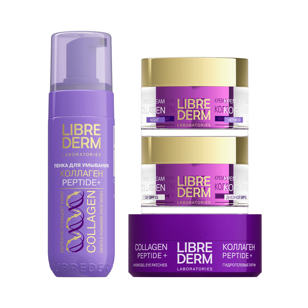 LIBREDERM набор Collagen «Сила Пептидов» | Состав набора: Косметичка белая плюшевая с серебряным логотипом Коллаген PEPTIDE+ пенка для умывания 160 мл Коллаген PEPTIDE PRO крем омолаживающий для лица, шеи и области декольте 50 мл Коллаген PEPTIDE PRO лифтинг-сыворотка Моментальный эффект 40 мл | COLLAGEN, SETS | `00046204811 | `4610216616375 |