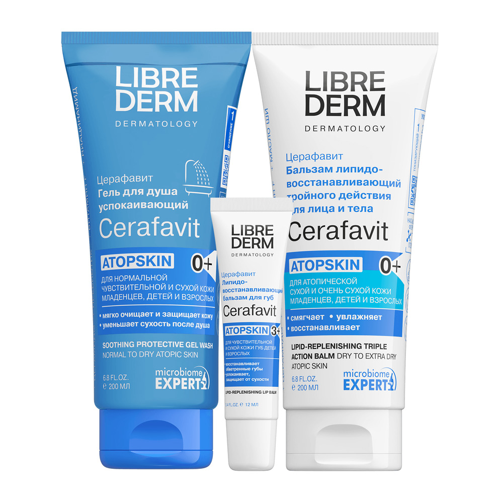 LIBREDERM набор CERAFAVIT Базовый уход с церамидами, пребиотиком и витамином F | Состав набора: CERAFAVIT бальзам липидовосстанавливающий тройного действия для лица и тела 200 мл CERAFAVIT масло липидовосстанавливающее для душа с церамидами и пребиотиком 200 мл CERAFAVIT бальзам для губ липидовосстанавливающий с церамидами и витамином F 12 мл | CERAFAVIT, SETS | `00046204443 | `4610216613107 |