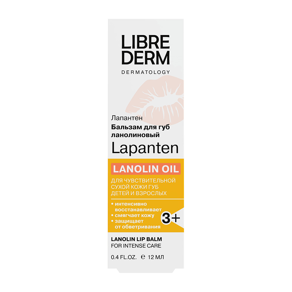 LIBREDERM LAPANTEN бальзам ланолиновый для интенсивного ухода за кожей губ детей и взрослых 12 мл | Для ухода за кожей губ взрослых и детей с 3-х лет, склонной к обветриванию, шелушению, раздражению и проявлению кожных проблем, связанных с сухостью. | LAPANTEN | `00046204130 | `4610216612889 |