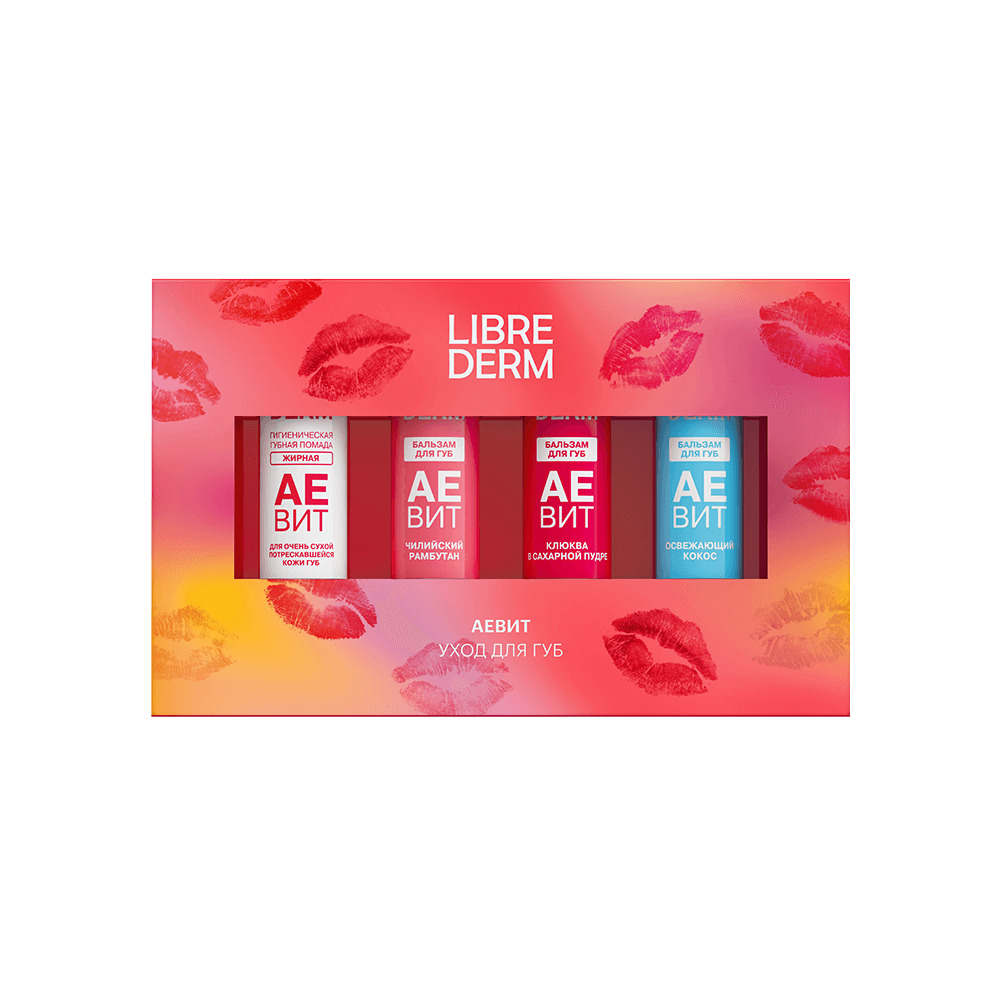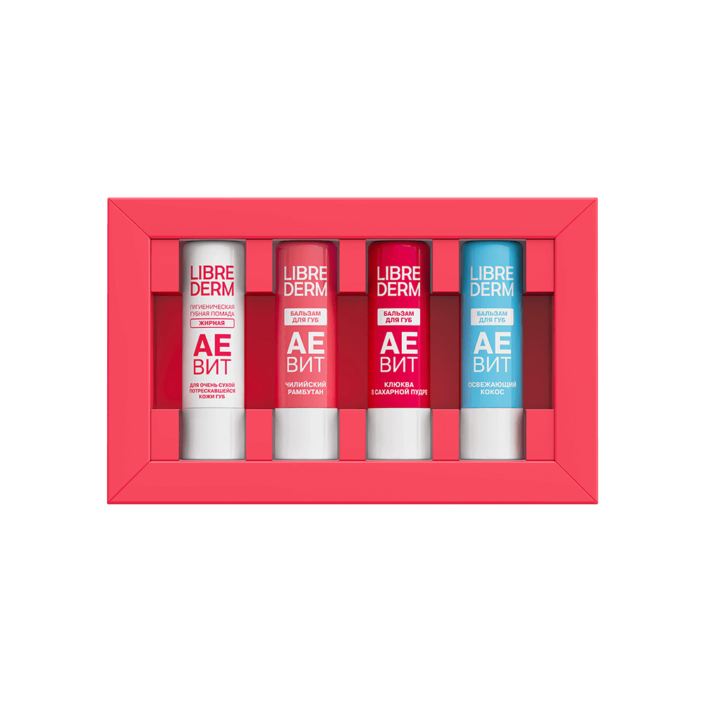 LIBREDERM АЕВИТ Набор для ухода за губами "Микс 1" | Состав набора: АЕВИТ гигиеническая губная помада жирная 4 г АЕВИТ бальзам для губ Чилийский рамбутан 4 г АЕВИТ бальзам для губ Клюква в сахарной пудре 4г АЕВИТ бальзам для губ Освежающий Кокос 4г | VITAMINS AEVIT, SETS | `00046204360 | `4610216614005 |