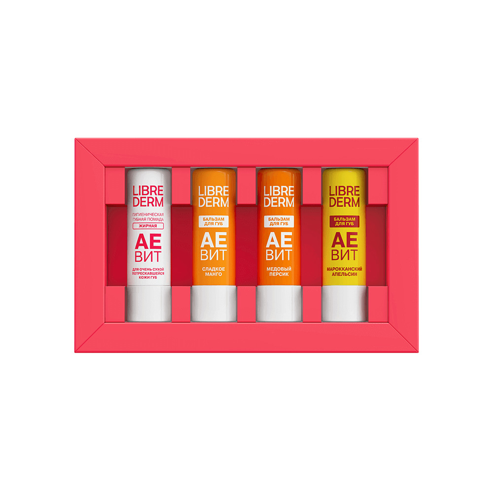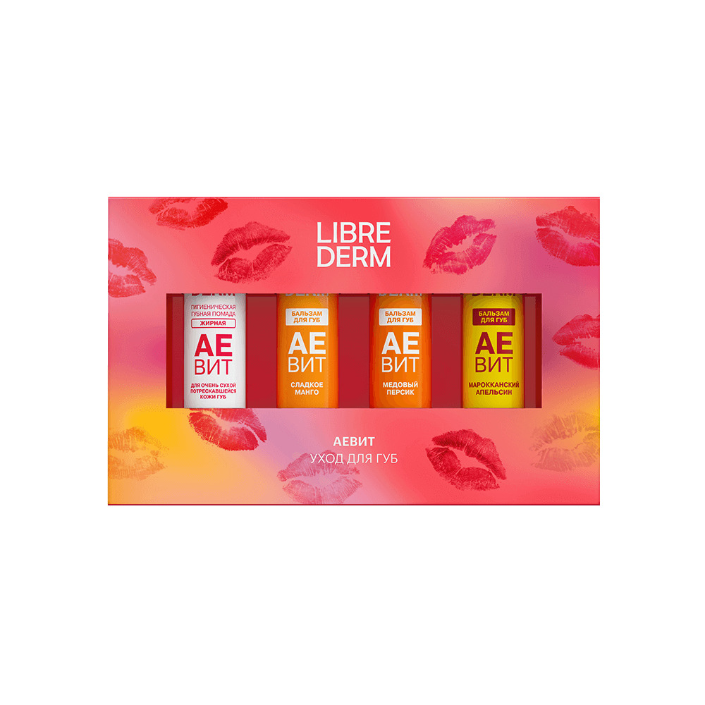 LIBREDERM АЕВИТ Набор для ухода за губами "Микс 2" | Состав набора: АЕВИТ гигиеническая губная помада жирная 4 г АЕВИТ бальзам для губ Сладкое Манго 4 г АЕВИТ бальзам для губ Медовый персик 4 г АЕВИТ бальзам для губ Марокканский апельсин 4 г | VITAMINS AEVIT, SETS | `00046204361 | `4610216614029 |
