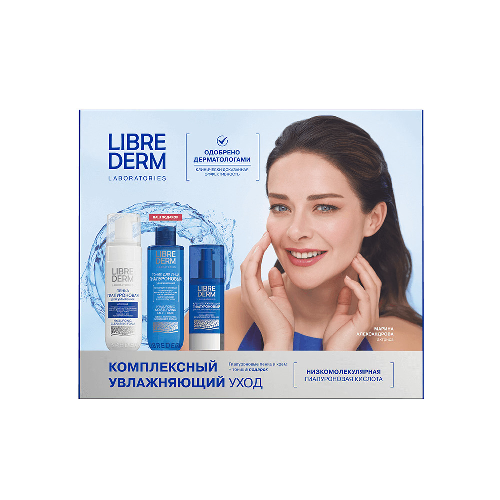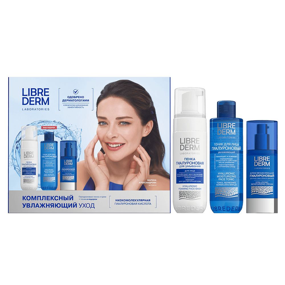LIBREDERM набор Гиалуроновый уход 3=2 «Три шага к увлажненной коже» | Состав набора: LIBREDERM Гиалуроновая пенка для умывания 160 мл LIBREDERM Гиалуроновый тоник для лица увлажняющий 200 мл LIBREDERM Гиалуроновый крем увлажняющий для лица, шеи и области декольте 50 мл | HYALURONIC, SETS | `00046204411 | `4610216613374 |