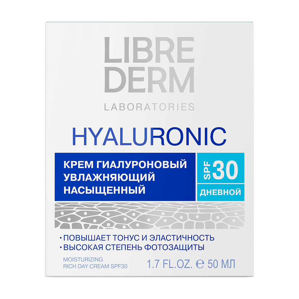 LIBREDERM Гиалуроновый крем увлажняющий насыщенный дневной SPF30 50 мл | Для суперинтенсивного увлажнения и восстановления очень сухой кожи. | HYALURONIC | `00046204697 | `4610216615941 |